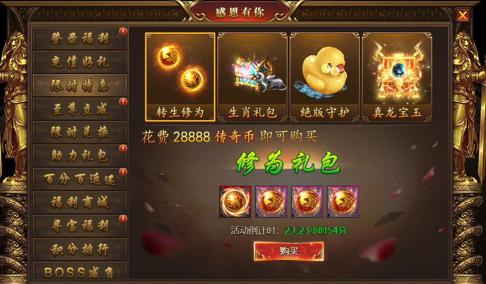 活动内容:活动期间可消耗传奇币购买特惠礼包