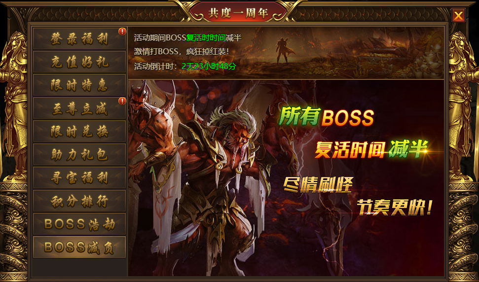 1.活动期间所有boss复活时间减半(跨服boss除外)